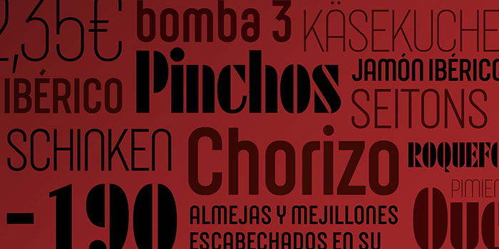 Finally, RUMBA, which is based on a calligraphic structure, explores the optical sizes principle from a very personal way. In coincidence with the release of these typefaces in TypeNetwork, we have included some extra characters and improve the performance of the OT Features.